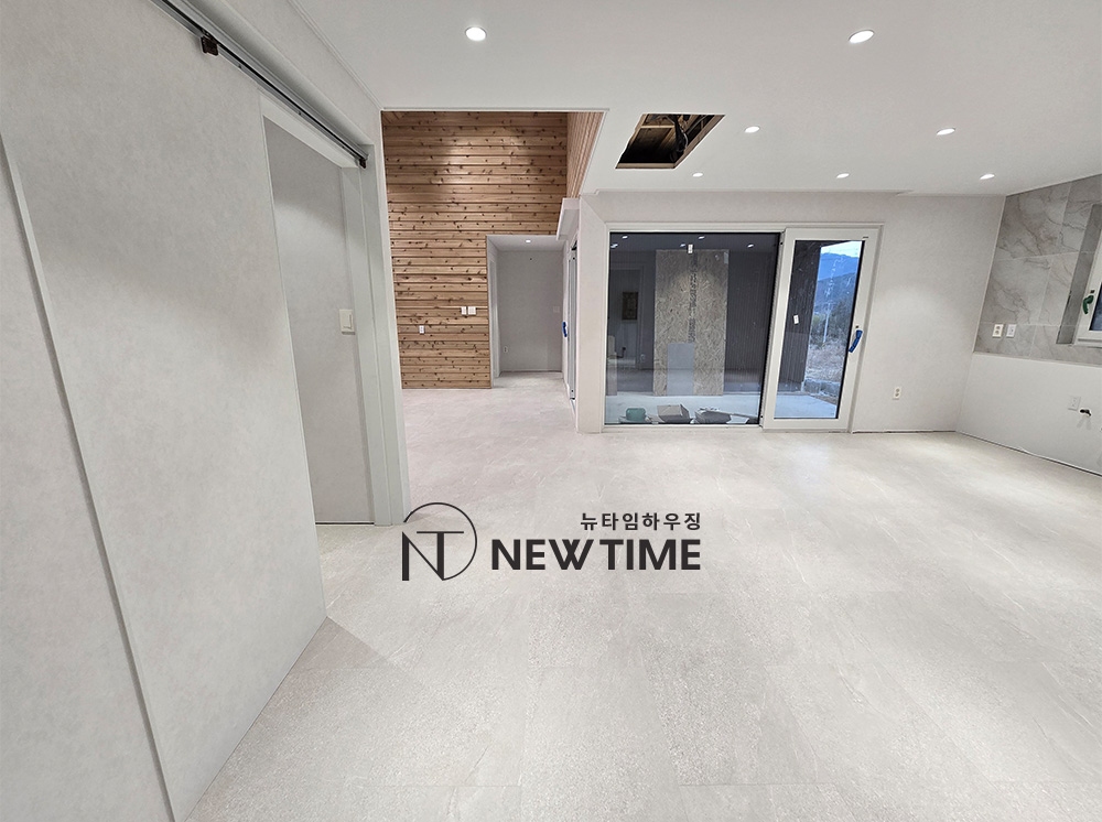 거실 기준으로 길이 방향을 맞춰 시공했습니다.