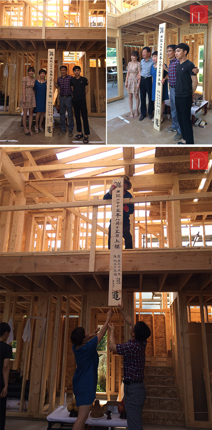 마룻대를 지붕으로 올리고 있습니다.